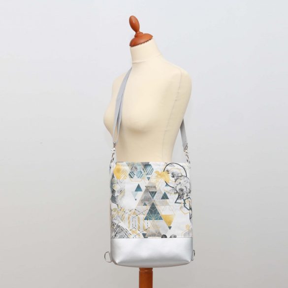 Harper 3in1 ekrü alapon okker-szürke-fekete-petrol kristályos mintás kézműves egyedi táska.