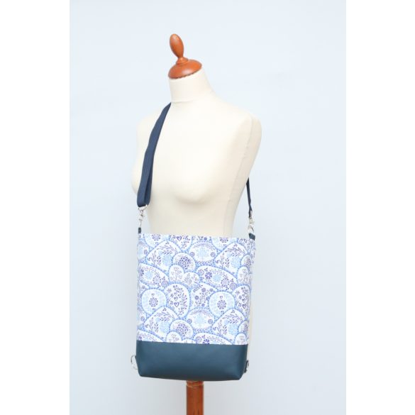 Paige 3in1 világoskék-sötétkék leveles-virágos mintás kézműves egyedi táska.